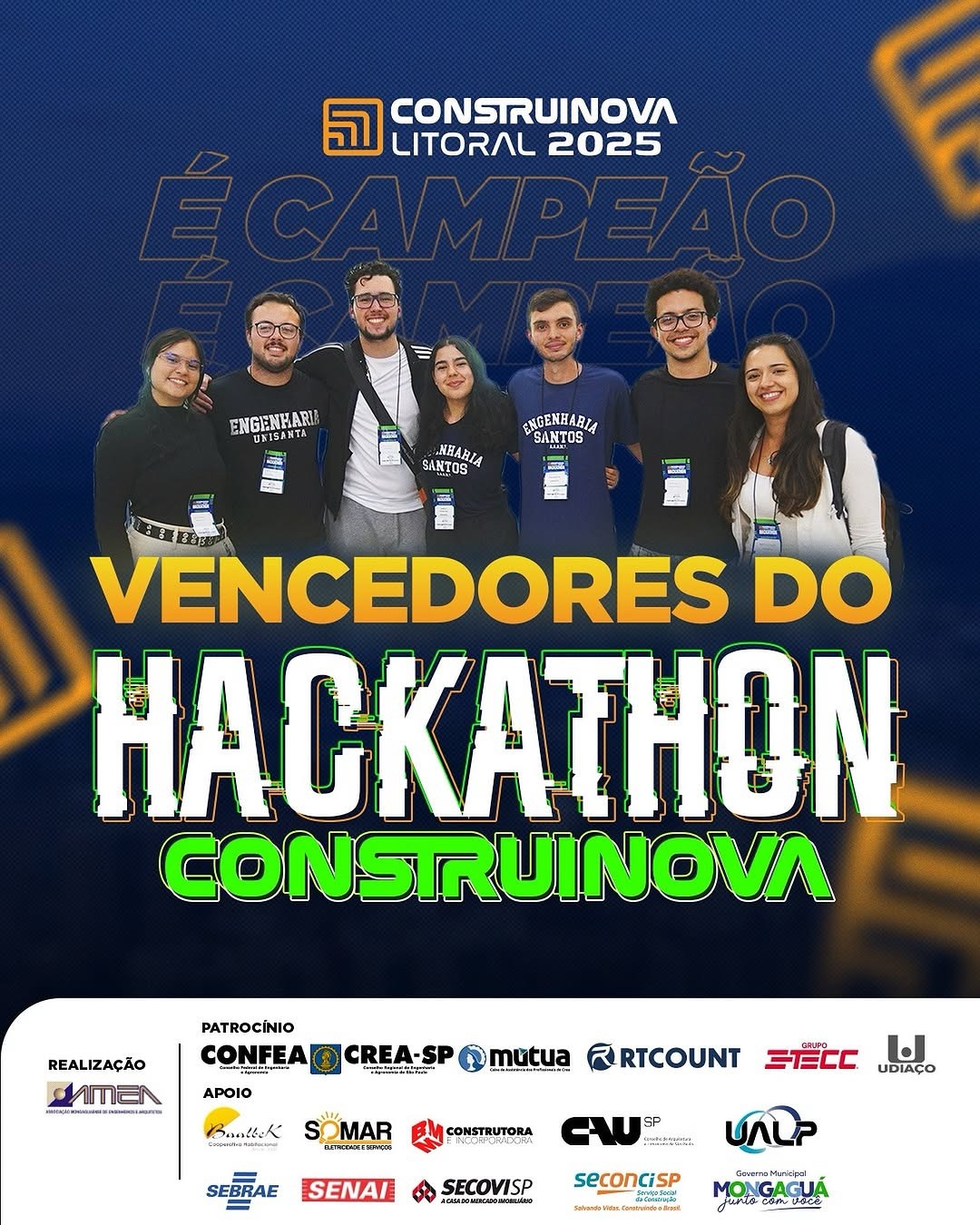 Vencedores do Hackathon Construinova!💡 Eles brilharam no Hackathon Construinova! A equipe Cecílianos, representando a Universidade Santa Cecília, mostrou talento, garra e muita criatividade para conquistar o 1º lugar…